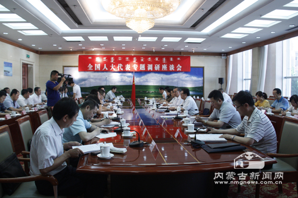 自治区部分全国人大代表就内蒙古风力发电的传输与利用情况召开座谈会。