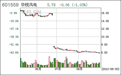 通过前复权计算,华锐风电从2011年1月13日至8月30日收盘,股价累计下跌72.9%。哲灵投资马骥8月30日在接受本报记者采访时指出,投资华锐风电的尉文渊、阚治东都是PE出身,从PE投资的角度上来说,既然两位大佬还没有退出,收益肯定大打折扣,在市场方面可能会有些动作。对华锐风电而言,业内一直认为该公司进入了当时很好的行业,通过并购、重组等方式使大连重工成为了第一股东。现在来说,这些股东套现非常难,因此不太看好PE方面的人接管华锐风电。从国家政策来看,国家在“十二五”规划中对新能源方面的政策很少。可能由于技术的原因,风电发电的电网、技术性的原因、材料耗能比较大以及其他因素,风电行业也没有出现扩产、扶持,整体行业看起来比较暗淡。