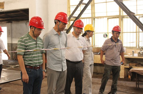 2012年9月4日,湖南省火电建设公司党委书记钟术蒙、副总经理兼多元产业分管领导乐周礼莅临金结公司检查指导工作。钟术蒙一行首先来到冷焊车间,查看正在生产中的桂阳桥市风电项目。桥市风电项目是继仰天湖风电项目开发成功后金结公司首次大规模开展风电产品制作,公司领导给予高度重视,钟书记强调,当前,电建行业竞争激烈,市场开拓困难,全体员工要树立忧患意识,关注大局,立足岗位,安全生产、保证质量,做好在手项目,为公司发展贡献力量。