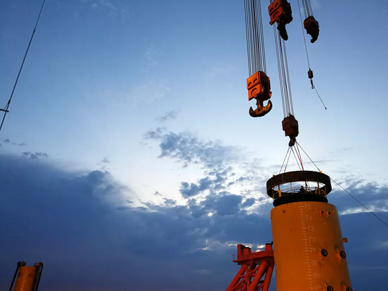龙源振华于2018年4月中标广东粤电湛江外罗海上风电项目。该项目规划装机容量为198兆瓦,共布置36台5.5兆瓦风机及一座220千瓦的海上升压站。首根重量约1000吨,直径达7米,长度约为75.5米海上风电管桩于7月1日完成施工。随着风电单机容量的大型化,结合地质与海况条件,该项目的风机载荷更大,桩体的直径、长度和重量都达到目前的极值。
