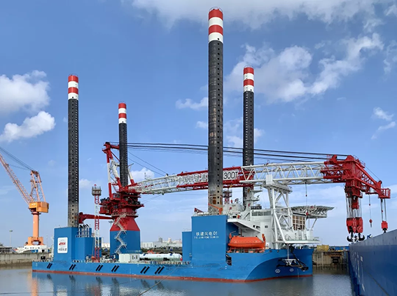 该项目位于江苏启东近海海域,场区中心离岸距离约37km,水深约10~16m,主要工程内容包括:48台6.25MW风机基础施工及风机安装,航标设置,卫星通讯等。单桩钢管桩直径为6.5~7.5m,重量约为1000~1400t,长度为85~95m。