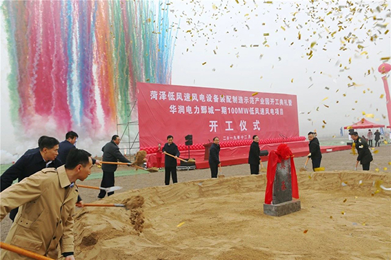 12月25日,在山东省菏泽市市委副书记、鄄城县委书记张伦等领导的见证下,中国海装联合华润电力华东大区、中铁二十四局等单位,举行了菏泽低风速风电设备装配制造示范产业园开工典礼暨华润电力鄄城一期100MW低风速风电项目开工仪式,标志着中国海装九大基地——菏泽低风速风电设备装配制造示范产业园建设工程进入开工建设阶段,也标志着以中国海装为龙头在鄄城打造的百亿级新能源风电制造产业集群迈出了坚实步伐。