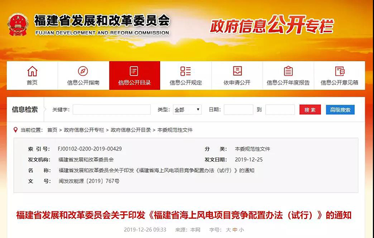 根据《国家能源局关于2019年风电、光伏发电项目建设有关事项的通知》(国能发新能〔2019〕49号)等相关要求,特制定《福建省海上风电项目竞争配置办法(试行)》。现印发给你们,请遵照执行。