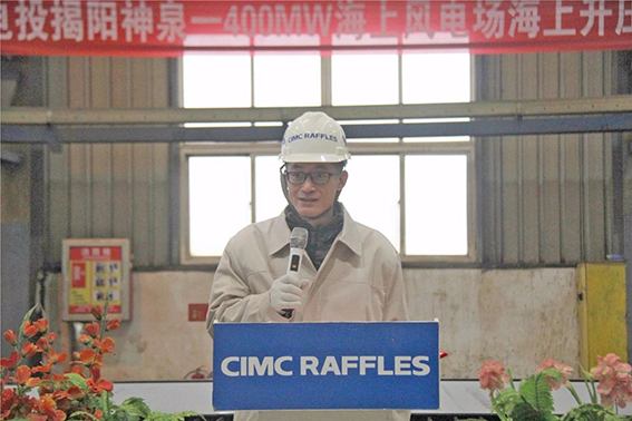 2020年1月6日上午,中集来福士承建的国家电投揭阳神泉一400MW海上升压站项目开工仪式在海阳基地MPC车间举行。国家电投广东公司副主任何永华,前詹风电副总邵斌,监理公司代表熊明非、瞿大雷、杨梁梁,中集来福士海阳建造基地总经理李永旺,铁中宝总经理常岩松等出席了开工仪式。