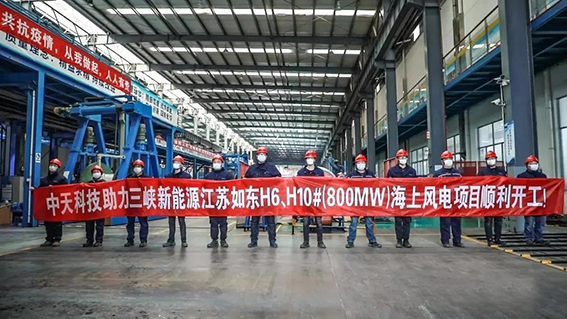 其中,中天科技海洋产业集团参与建设的江苏如东800MW(H6#,H10#)海上风电项目是此次开工项目中容量最大、投资最多的“超级工程”之一。该工程辐射范围广、带动作用强,对推动产业链各环节协同复工复产,调整优化地方产业结构,促进经济社会高质量发展具有重要作用。