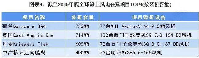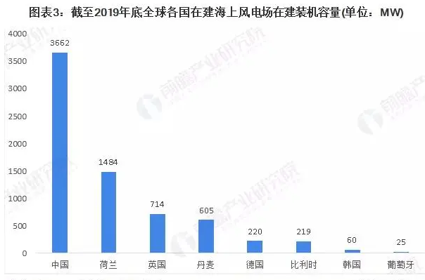 截至2019年底,全球共有23个在建海上风电项目,共7GW;其中中国在建海上风电项目达到13个,占全球56.5%。同时,从装机容量分布来看,中国在建海上风电项目的装机容量高达3.7GW,占全球在建海上风电项目容量的52.9%。可以看出,中国在海上风电市场的布局快速扩张。同时,前瞻结合目前全球已投运的装机容量以及在建装机容量来看,中国在2020年后将有可能成为全球最大的海上风电市场。