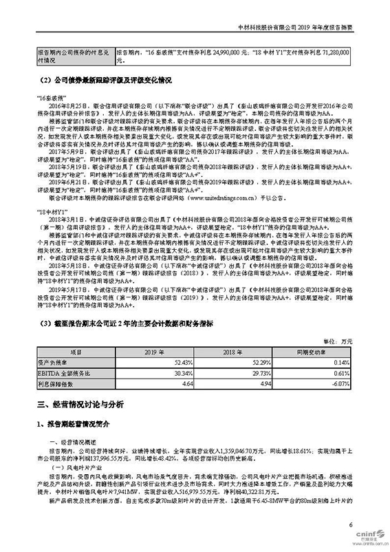 报告期内合计销售风电叶片7.94GW,实现销售收入51.7亿元,净利润4亿元,市场占有率稳中有升,继续保持国内市场龙头地位。