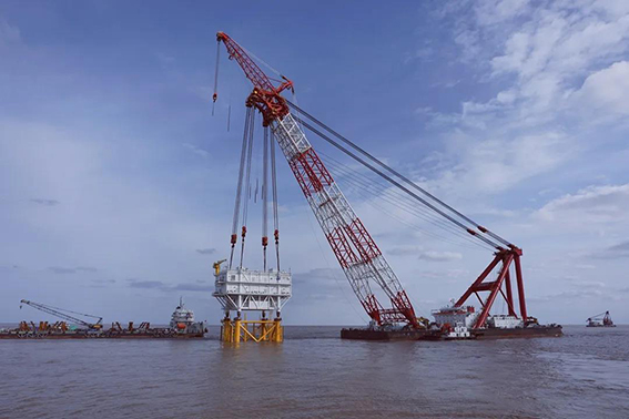 嘉兴1号海上升压站地理位置特殊,水域平均水深6至10米,现场作业水流快、航道复杂,这将给“新振浮7”轮进出场及现场吊装增加难度,海服集团与业主进行多次交流讨论,提前做好各项风险管控预案,以确保项目后期顺利实施。