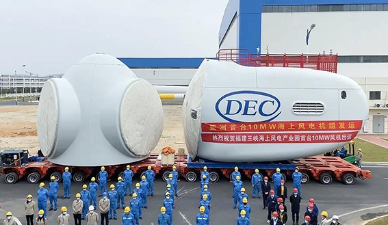 4月25日上午,东方电气研制的具有完全自主知识产权的国内首台、同时也是亚洲首台10兆瓦海上抗台风型风电机组,从东方电气福建制造基地起运,前往福建兴化湾二期风电场。