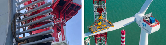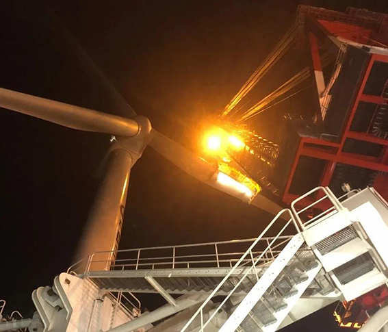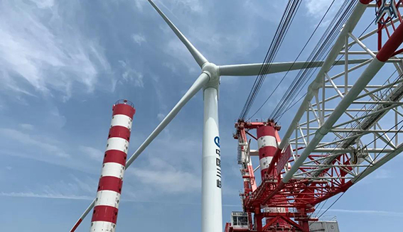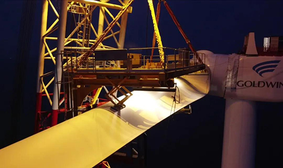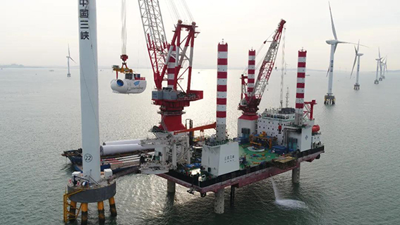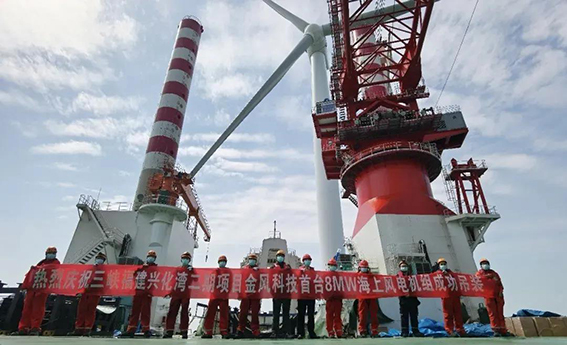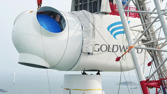 两小时后,现场吊装负责人在对讲机中一声命令:“主吊摘钩!”在三峡、三航局和金风科技的高效协作下,GW175-8.0海上风电机组吊装成功。