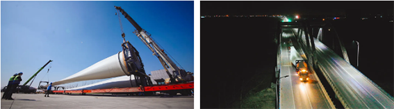 3月18日,天气晴,在江苏阜宁诞生的三支长达85.6米的风机叶片“日夜兼程”,今天抵达射阳港。欢迎这些“大家伙”。