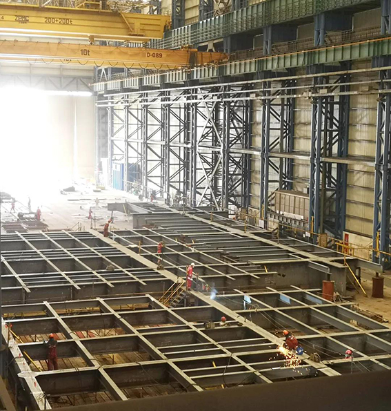 经过前期的周密准备,该换流站项目于3月15日在振华重工海工平台事业部开始制作。目前,上部模块一层共15个分段已全部上胎,二层和三层也正在逐步有序地推进。