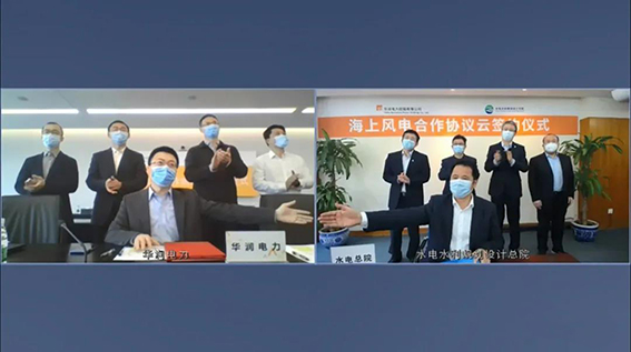 双方采用云签约模式,华润电力助理总裁许洪波、水电总院副院长易跃春分别代表双方签署合作协议。根据协议,未来双方将依托自身的资源和技术优势,在大型海上风电基地项目、海上风电试验风场项目等领域展开合作,探讨共同建设深远海海上风电技术研究中心,并建立高效的沟通机制对可再生能源信息与动态进行共享。