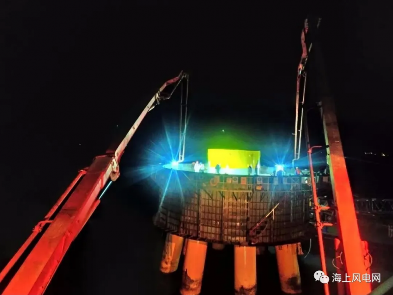 据悉,S10号机位承台也是该标段浇注完成的第1座承台基础。在“五一”劳动节即将来临之际,该项目部成功为4月份既定施工计划——“1+2+3方案”(4月份施工计划:完成1个单桩工程建设、石城海上风电场完成2个承台浇注、平海湾海上风电场完成3个承台浇注)划上了圆满符号,再次交上了一份精彩的“答卷”。