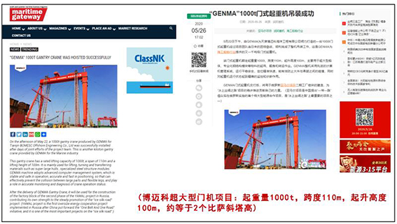 凭借先进的设计理念、欧标化的制造能力和全心全意的服务态度,GENMA品牌大型门式起重机赢得了客户的青睐,并逐步适应了船舶和海工建造市场的需求变化。