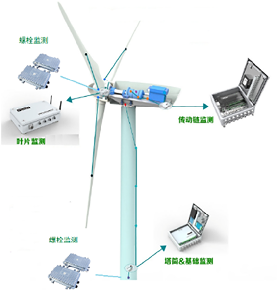 风机的感知能力需要应用各种先进传感器对风电机组所处环境、状态、行为的全方位、深层次的获取。通过丰富的数据获取,为智能风机的管理和控制提供准确有效的数据输入。除常规的风速风向、温湿度、振动等传感器之外,中国海装还提供了叶片振动监测系统、传动链振动监测系统、塔筒监测系统等各类智能型传感器系统。大规模传感器的部署和应用,构成智能风机的眼睛、耳朵、触感,实时感知机组运行过程的全状态。“观”状态、“听”频谱、“感”振动,实现机组状态全方位的监测。