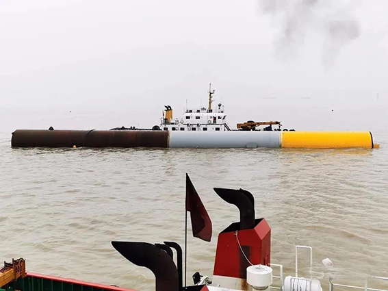 目前,国内海上风电建设如火如荼,正处于“抢装潮”的关口,面临船机资源紧缺,上网电价下行的压力,大直径单桩是海上风电建设的主要基础型式,传统的驳船运输与沉桩工艺需要占用大量船机设备等资源,成本较高。为降本增效,针对无过渡段单桩和桩顶沉桩保护法兰的特点,公司风电研发团队通过技术攻关、方案设计,研发了集封堵、防翻转、拖航、浮力扶正于一体的大直径单桩封堵器,同时为保证运输过程中的风险管控,开发了具有密封检验、姿态控制、进水感知的智能化控制系统,并形成配套的施工工艺。