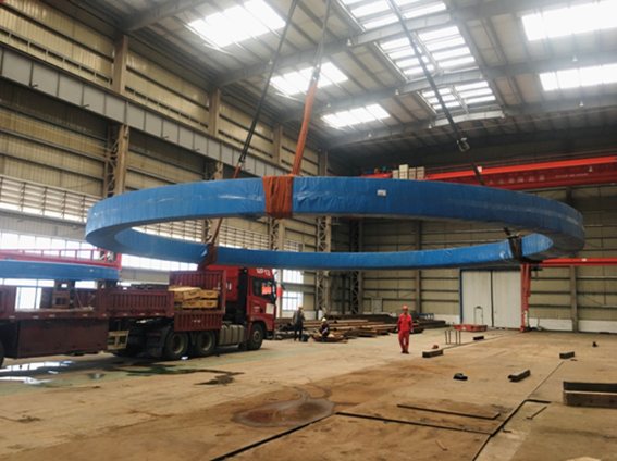 8月7日,随着历时近两年研发生产制造的V型12MW浮式海上风电机组核心部件之一---轴承(直径达7.8米),顺利运达山东中能融合海上风电青岛总装基地,中能融合V型12MW浮式海上风电机组正式进入总装测试阶段。同时,即将下线的V型6MW浮式风电机组也将于年内在青岛蓝谷小管岛海域进行安装运行,为中能融合浮式海上风电机组走向深远海提供经验与基础。中能融合具有完全自主知识产权的12MW级浮式海上风力发电机组在青岛的投产将为山东深远海浮式风电的示范应用、平价上网、融合发展提供强有力的技术支撑。