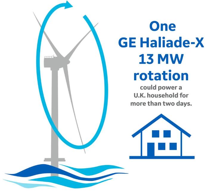 ·GE Haliade-X 13MW机组只需旋转一圈,即可满足一个英国家庭两天的用电需求