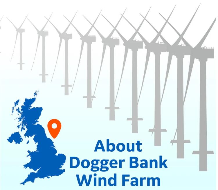 Dogger Bank风电场位于英格兰东北海岸以外130多公里处。项目预计于2026年竣工,每年将为多达450万户家庭供电。由于其规模较大,该风电场将分为三个阶段建设,Dogger Bank A, Dogger Bank B 以及Dogger Bank C。