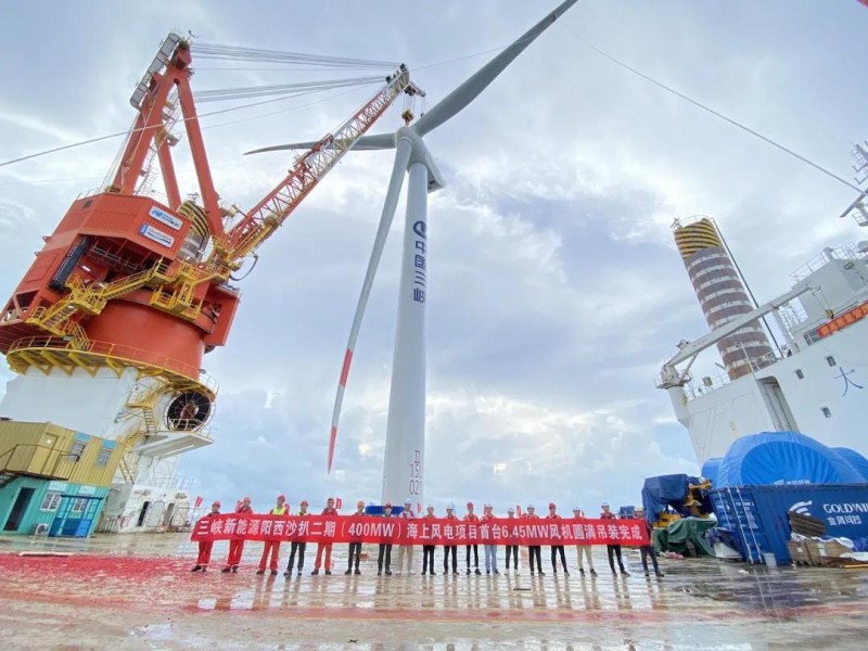9月23日6时16分,叶轮在超百米高空与机舱精准对接,标志着三峡新能源广东阳江沙扒二期400MW海上风电项目首台风机吊装成功,这是我国南海海域吊装的首台6.45MW海上风机。