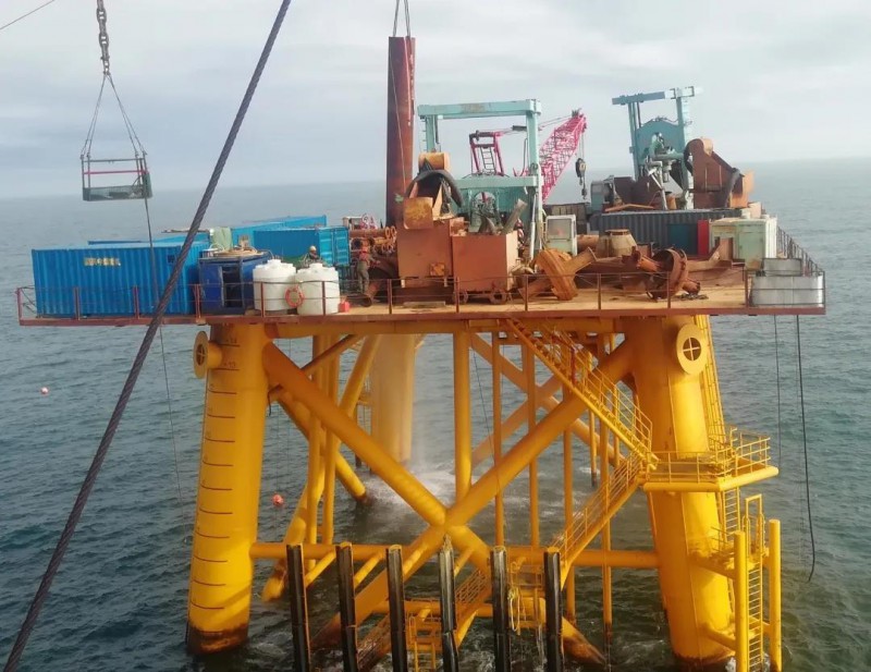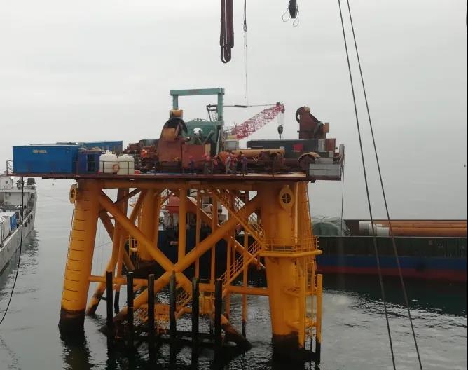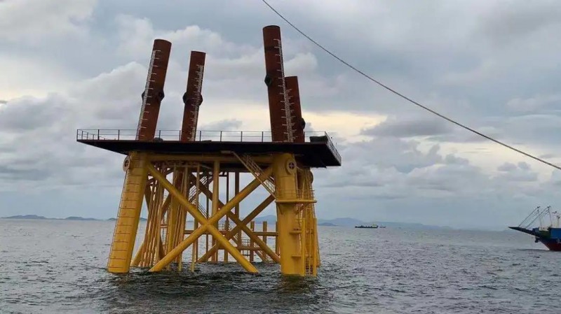 11月21日12时56分,高40余米,重达1700余吨的国内首座四桩斜桩植入嵌岩升压站导管架基础在三峡新能源广东阳江二期项目顺利完成施工,这是该项目继国内首个大直径四桩导管架基础桩后,再次突破海上风电施工技术难题。