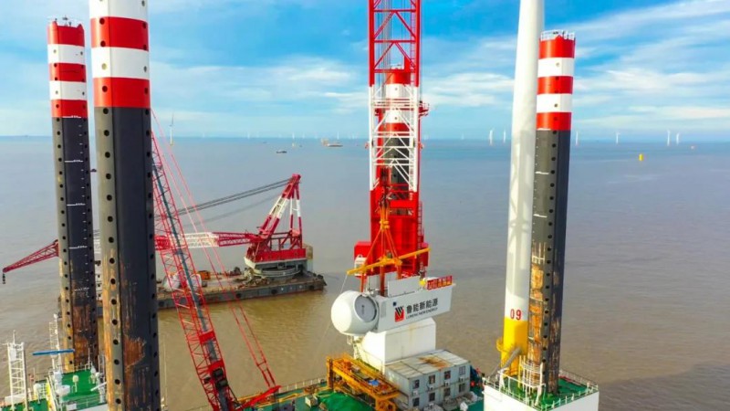 此次吊装完成的6#风机总重约1400吨,其中,机舱、轮毂、叶片吊装重量约为250吨。“6#风机与邻近的其他3台风机同处于施工难度较大的浅滩区。”据江苏广恒新能源有限公司、如东海上风电场场长裴波介绍,浅滩区施工受天气、潮水因素影响大,浅滩施工船必须乘潮进场,待潮水退去后,进行坐滩施工,作业时间十分有限。为提高工效,项目部在前期地勘、扫海的基础上,对吊装方案进行了再优化,并采用适应海况的专业设备,有力保障了吊装工作顺利完成。