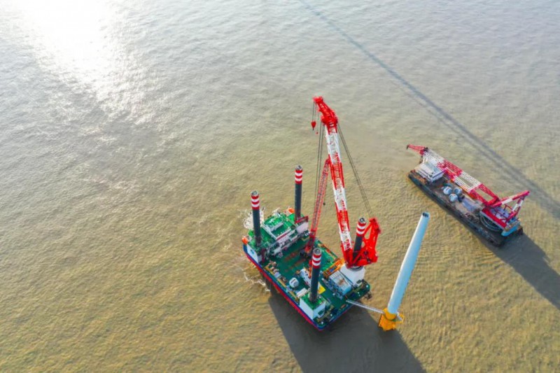 11月30日23时,在离岸40公里的如东近海海域竹根沙东侧,江苏如东H14#海上风电场项目最后一台风机顺利吊装完成,至此,该项目50台风机全部吊装结束,标志着H14#项目主体工程全面完工,即将进入全场并网阶段。