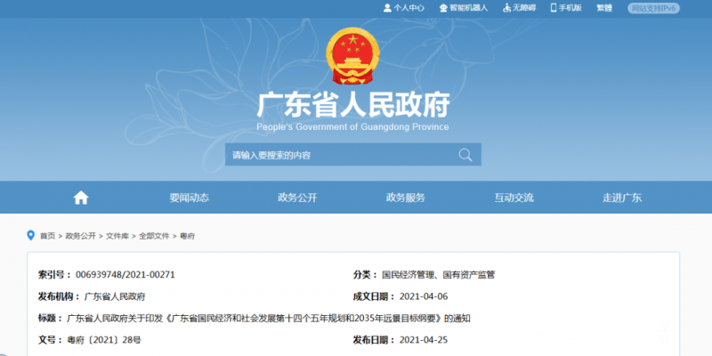 广东省人民政府关于印发《广东省国民经济和社会发展第十四个五年规划和2035年远景目标纲要》的通知