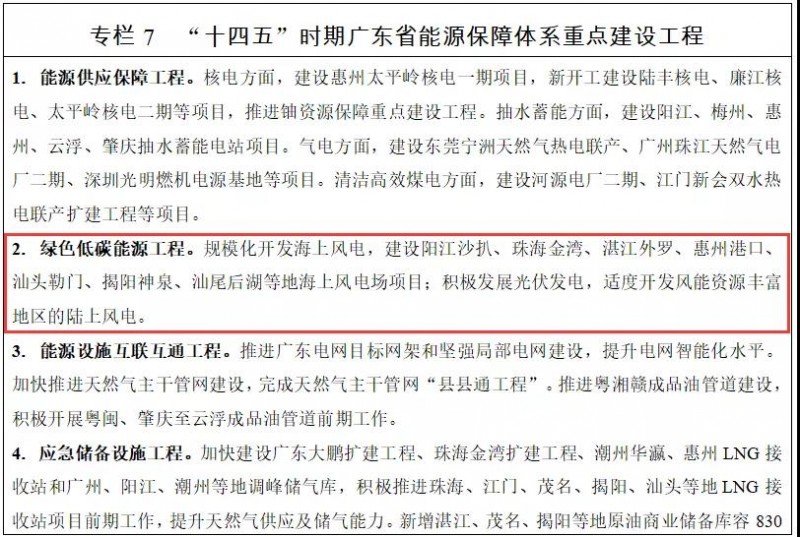 推动海洋传统产业转型升级。完善海上风电产业链,着力推 进近海深水区风电项目规模化开发,积极推进深远海浮式海上风 电场建设,加快建设粤西海上风电高端装备制造基地、粤东海上 风电运维和整机组装基地,加快形成产值超千亿元海上风电产业集群……