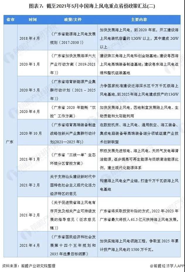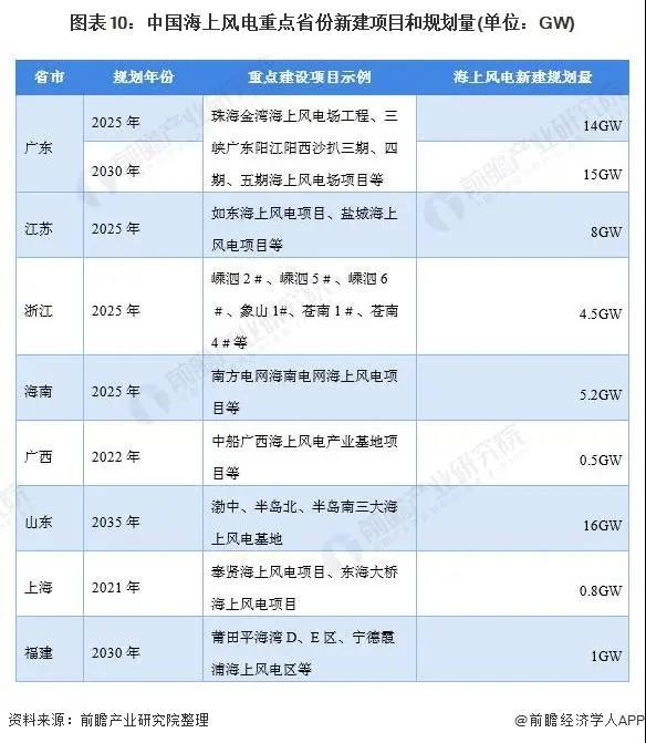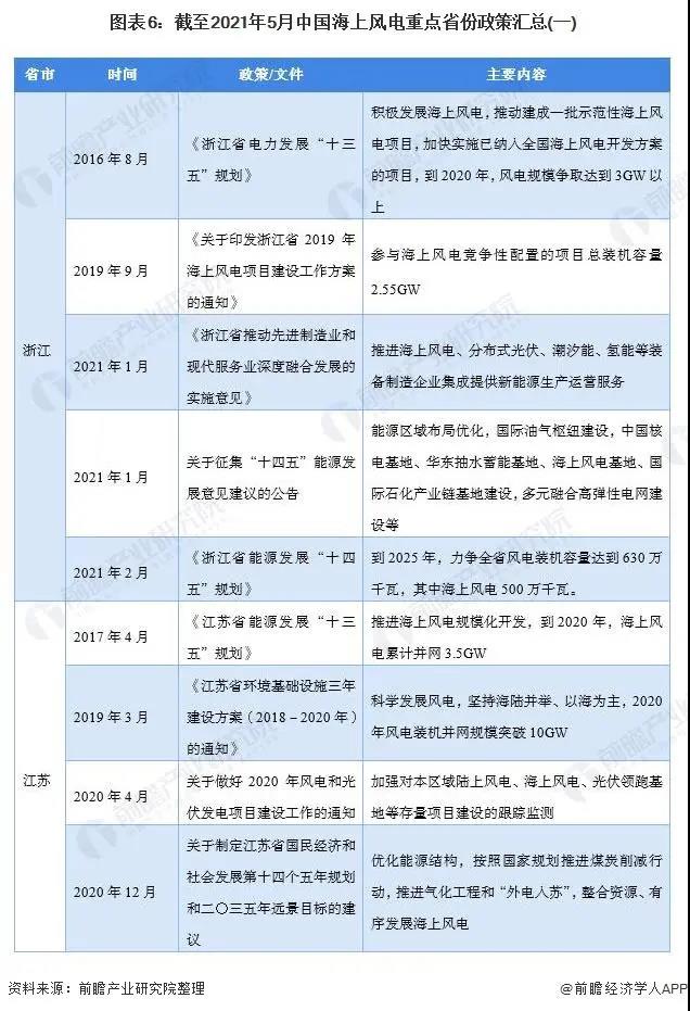 海上风电政策重点省市:江苏省、广东省、浙江省等