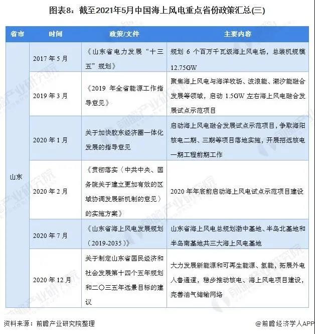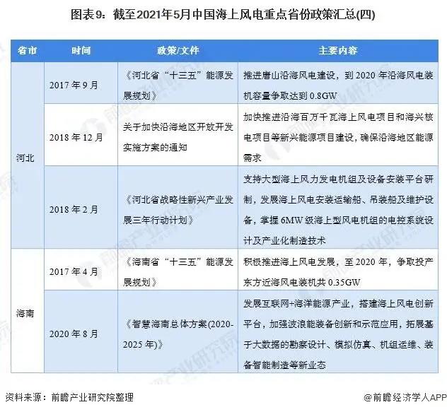 对于沿海重点省市,其海上风电资源丰富,发展潜力大,海上风力发电将是其能源产业的重点之一,大力发展海上风电是推进能源结构调整、实现高质量发展的重要抓手,是建设海洋强省的重要举措。截至2021年5月,我国海上风电重点省份的政策汇总如下: