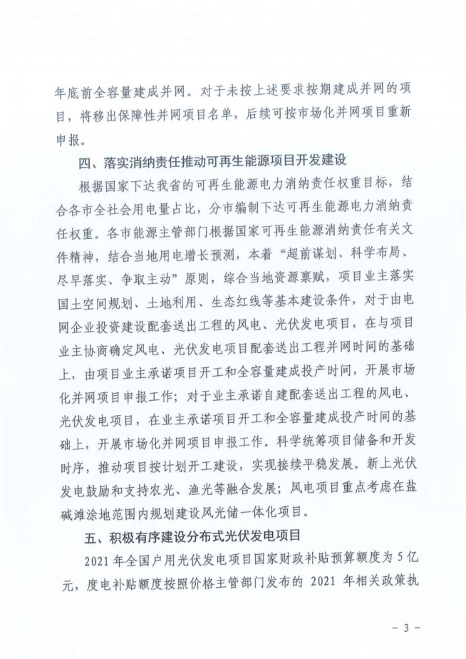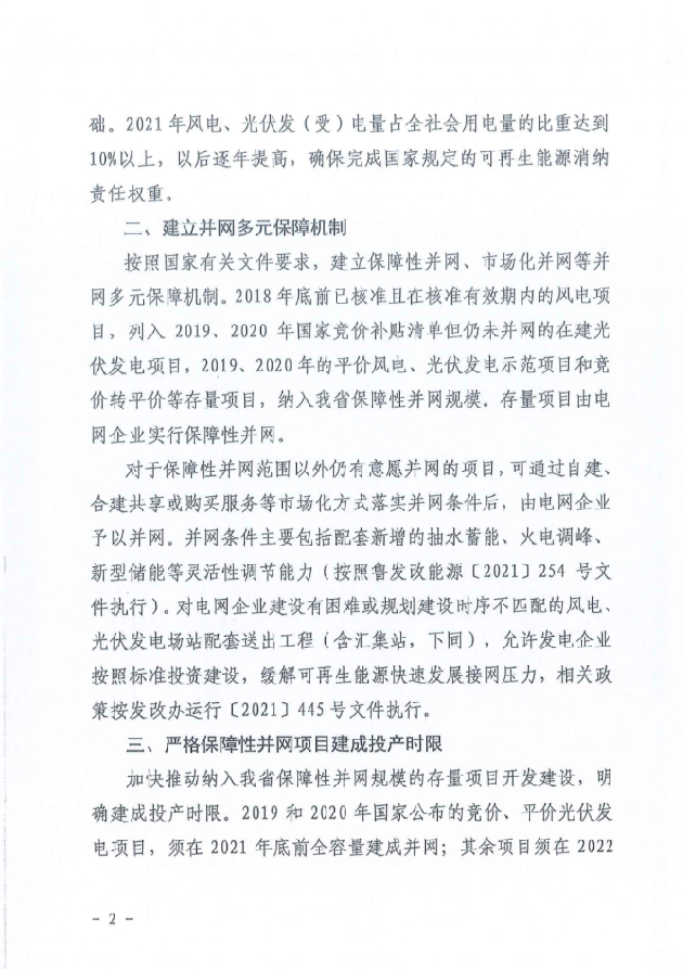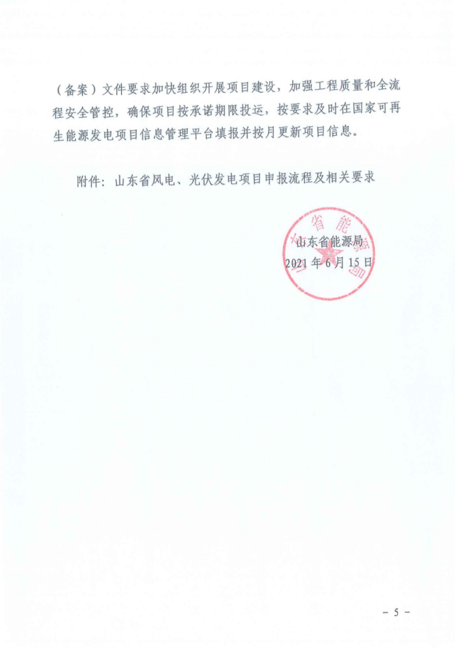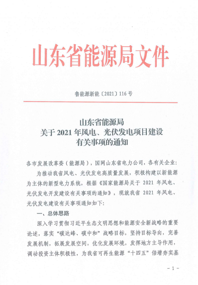 山东省能源局关于2021年风电、光伏发电项目建设有关事项的通知