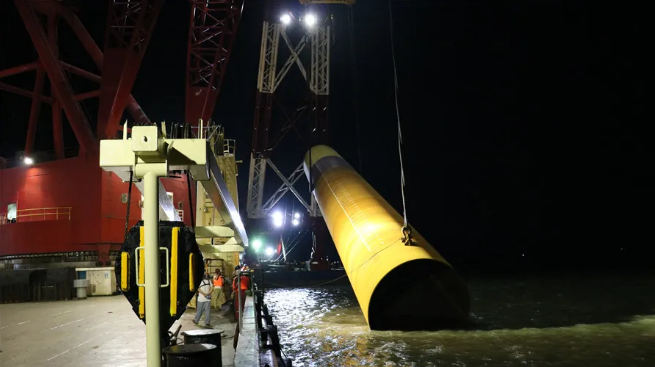 三航局灌云风电项目第一根桩夜间施工中