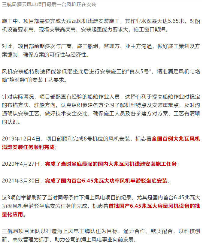 三航局灌云风电项目首台风机施工