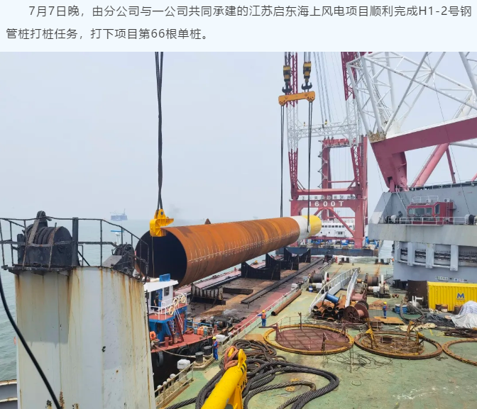 全力冲刺!分公司启东项目完成第66根钢管桩打桩任务