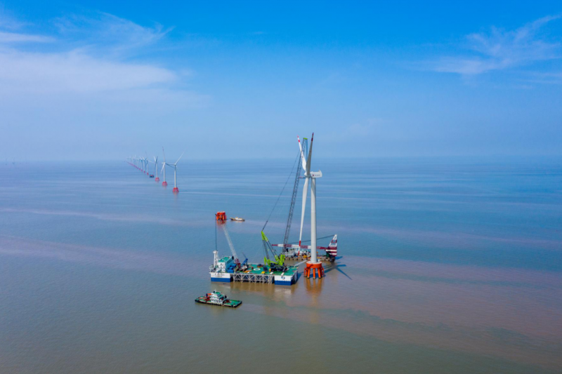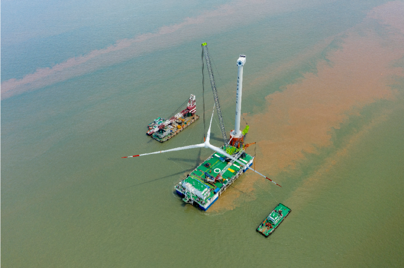 2021年8月18日13时43分,由中交三航局承建的浙能嘉兴1号海上风电项目在浙江省杭州湾平湖海域顺利完成首台重庆海装6.2MW试验风机的吊装,标志着该项目在建设过程中取得了又一重大突破,也为在浙江地区海上风机选型迈出了坚实的一步。