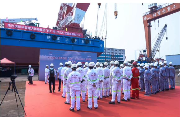 9月12日,中国铁建大桥局“铁建大桥起1”号2200吨起重船在深圳孖洲岛修造船基地下水,该船由中国船舶集团第七〇八研究所研发设计,具有完全自主知识产权,交付后将首先用于澳氹第四条跨海大桥钢梁吊装。第七〇八研究所副所长李小平出席下水仪式。