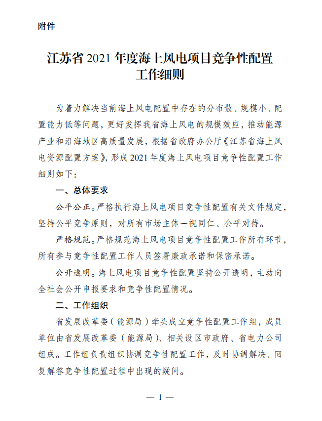 江苏省发展改革委关于印发《江苏省2021年度海上风电项目竞争性配置工作细则》的通知