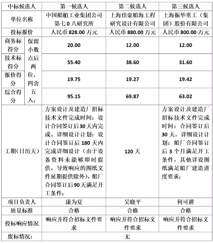 江苏华西村海洋工程服务有限公司风电安装船建造项目设计招标[招标编号:TC210x06B]的招标评标工作已经结束,经专家评审,评标委员会推荐了本项目中标候选人。现将中标获选人情况予以公示,具体内容如下: