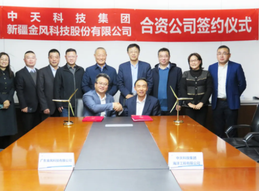 12月15日,金风科技全资子公司广东金风科技有限公司(下称“广东金风”)与中天科技全资子公司中天科技集团海洋工程有限公司(下称“中天海洋工程”)在金风科技亦庄“碳中和”智慧园区举办合资公司签约仪式。双方将发挥各自优势,共同打造新一代自升式海上风电安装船。金风科技董事长武钢、副总裁李飞、海上业务单元总经理王健,中天科技集团董事长薛济萍、副总经理薛如根、海洋产业集团总裁肖方印等出席仪式。