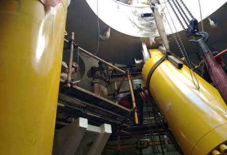 在“华电稳强”号自升式平台安装现场,面对设备起吊能力有限、工期紧张等问题,GENMA工程人员结合现场条件及时调整施工方案,采用固桩架的片体式安装方法,最终按照时间节点高效完成攻坚任务。