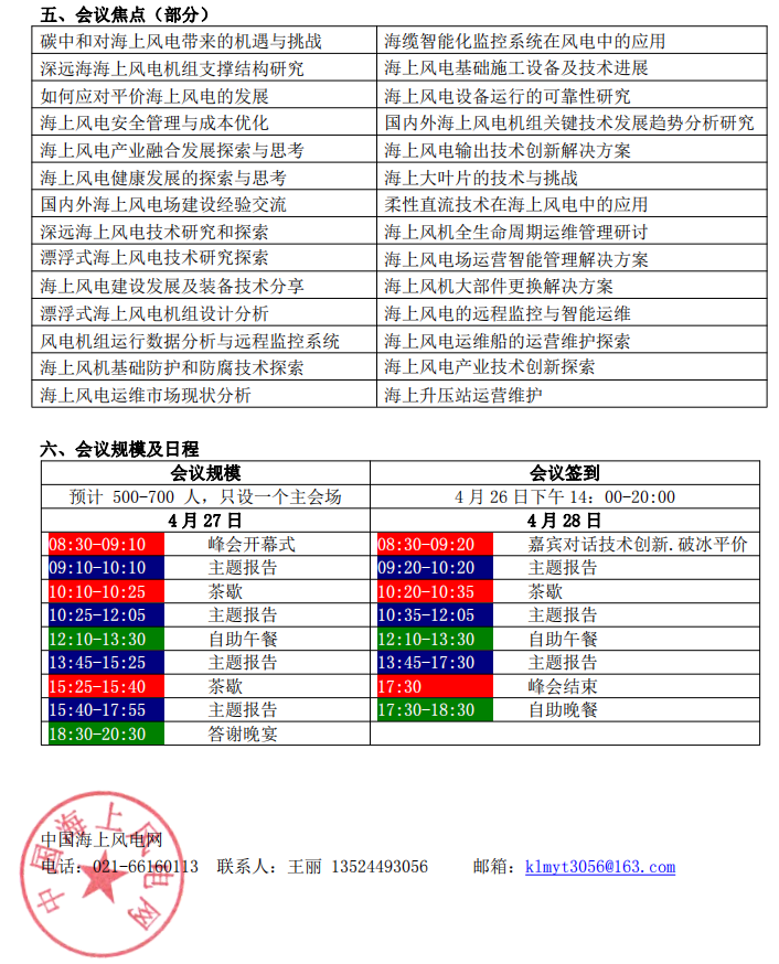 此次会议将重点关注海上风电的前沿技术发展、市场机遇挑战;创造高效沟通,力促双赢 合作。我们热诚欢迎国内外海上风电行业的专家和知名企事业单位出席会议,共享行业发展带 来的机遇!