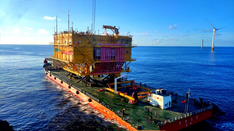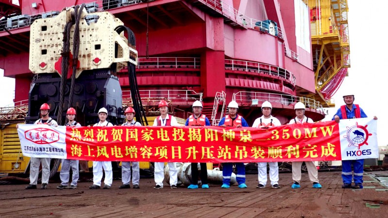 2022年8月15日,由江苏龙源振华海洋工程有限公司承建的国家电投揭阳神泉二350MW海上风电项目增容项目顺利完成海上升压站吊装任务,标志着广东粤东区域海上风电场离岸最远、最大、最重海上升压站顺利完成。