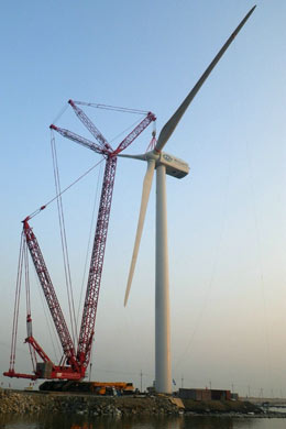 11月6日,国电科环所属联合动力技术有限公司自主研发的国内首台扫风面积最大的6MW风电机组在山东潍坊顺利完成吊装。
