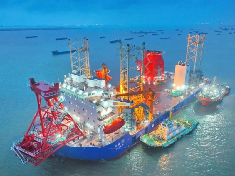 6月5日,振华重装承建的“海峰1001”2500T风电安装平台在4号基地顺利出坞,驶向南通大基地码头。