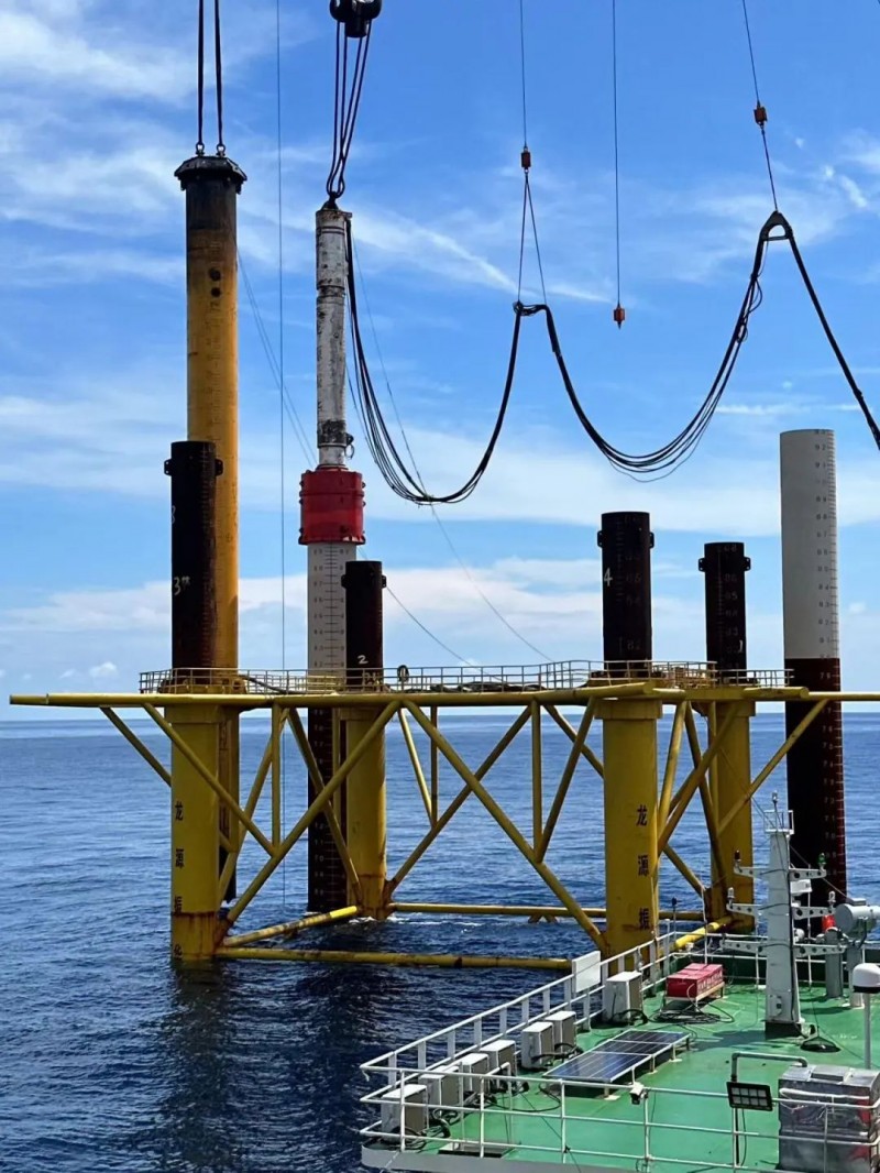 青洲一、二项目风机基础采用四桩导管架基础型式,桩径约为2.8-3.1米,最大桩长93米,最大桩重309吨。项目场址位于阳江市阳西县南侧海域,场址水深35-43米,项目规划装机容量100万千瓦,布置92台抗台风型MySE11-230海上风力发电机组,配套建设1座500kV海上升压站和1座陆上集控中心。