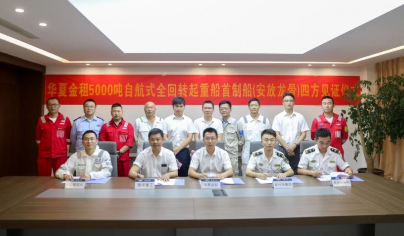 近日,华夏金租5000吨自航式全回转起重船项目举行铺龙骨仪式,泰州海事局、CCS南通办事处、华夏金租、振华重工共同签署四方见证文件,标志该项目进入全面搭载阶段。
