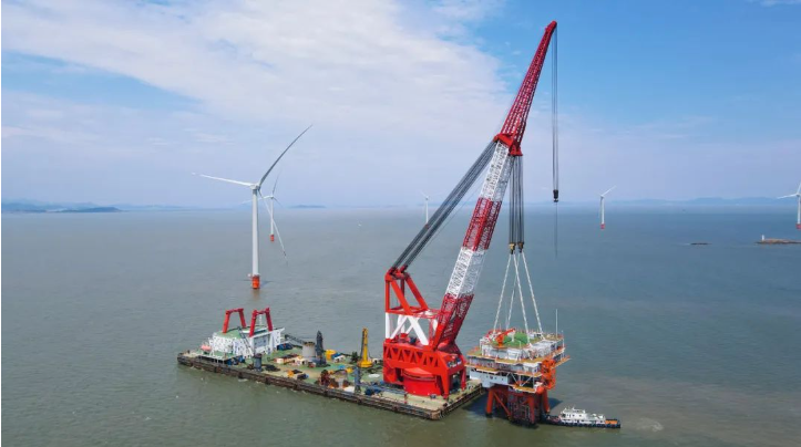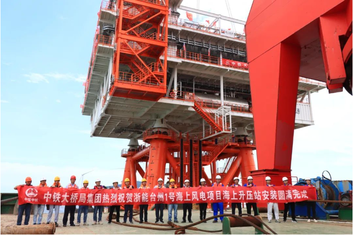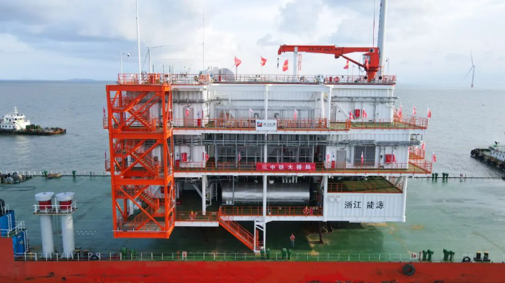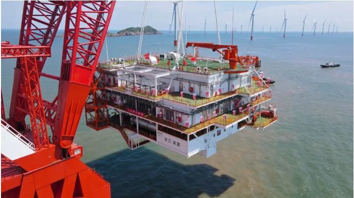 浙能台州1号海上风电220KV海上升压站安装成功