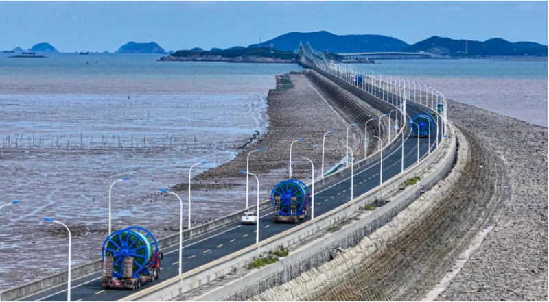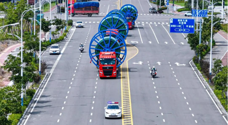 9月12日,装载着“定海神针”的运输车队从浙江四兄绳业有限公司(以下简称四兄绳业)工厂缓缓驶出,安全通过跨海大桥,陆续到达头门港码头。